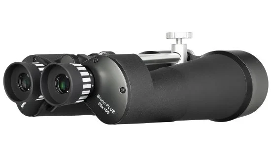 Prismáticos con un aumento de 25x para el examen detallado de objetos terrestres y espaciales y un par de lentes (objetivos) con un diámetro de 100 mm, que proporciona al usuario una potencia luminosa excepcionalmente alta para obtener una imagen brillante y nítida en todo el campo de visión.