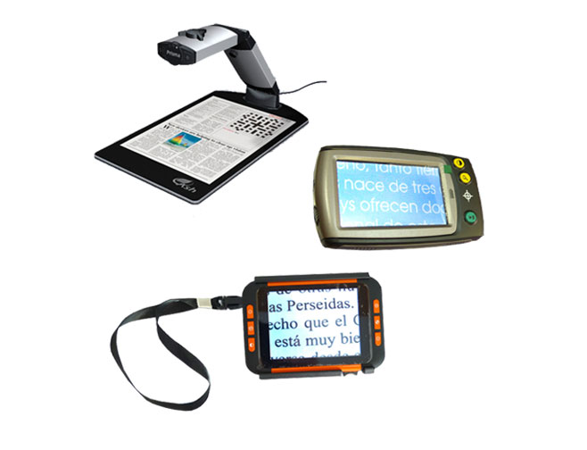 Ayuda visual electrónica con excelente calidad de reproducción de imagen y manejo intuitivo, postura de lectura muy cómoda. Gran campo visual abarcando la columna completa de un periódico.